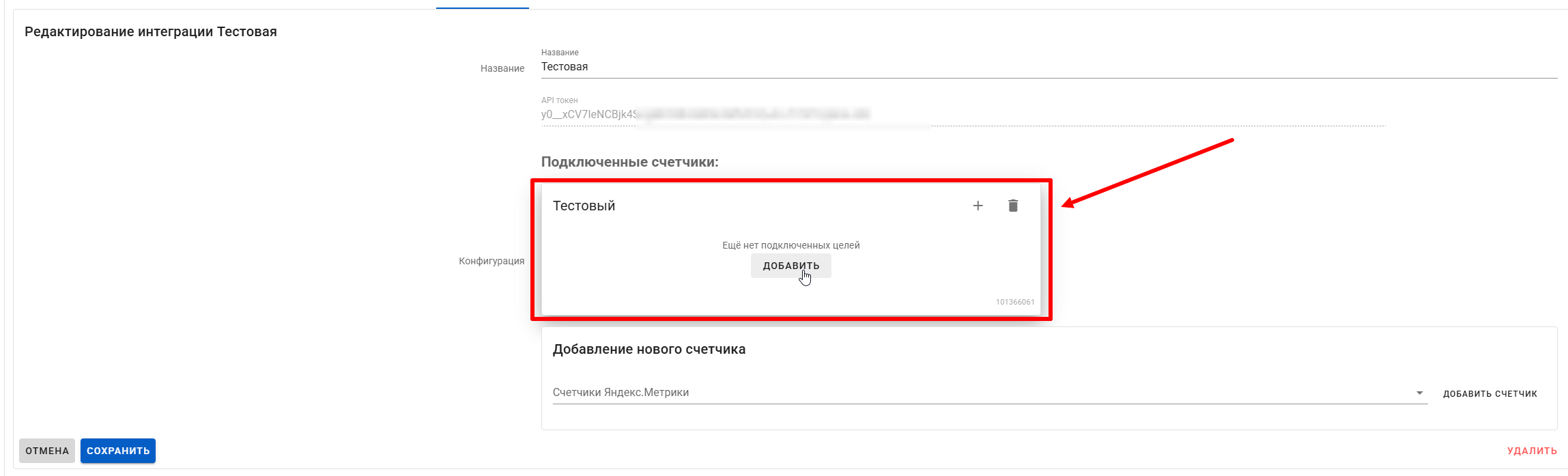 При необходимости в эту интеграцию можно добавить **дополнительные цели** или же **новый счетчик.**
