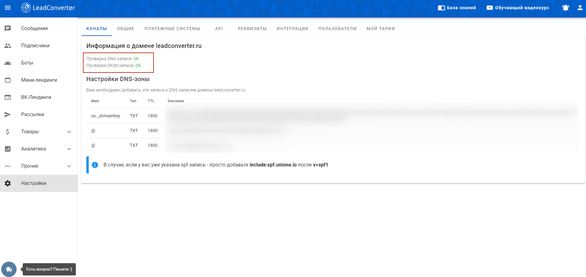 Если у вас возникли сложности с добавлением **DNS-записей** на стороне вашего хостинга, напишите, нам [**в техническую поддержку**](https://docs.leadconverter.su/kak-zadat-vopros-v-podderzhku), мы постараемся вам помочь.