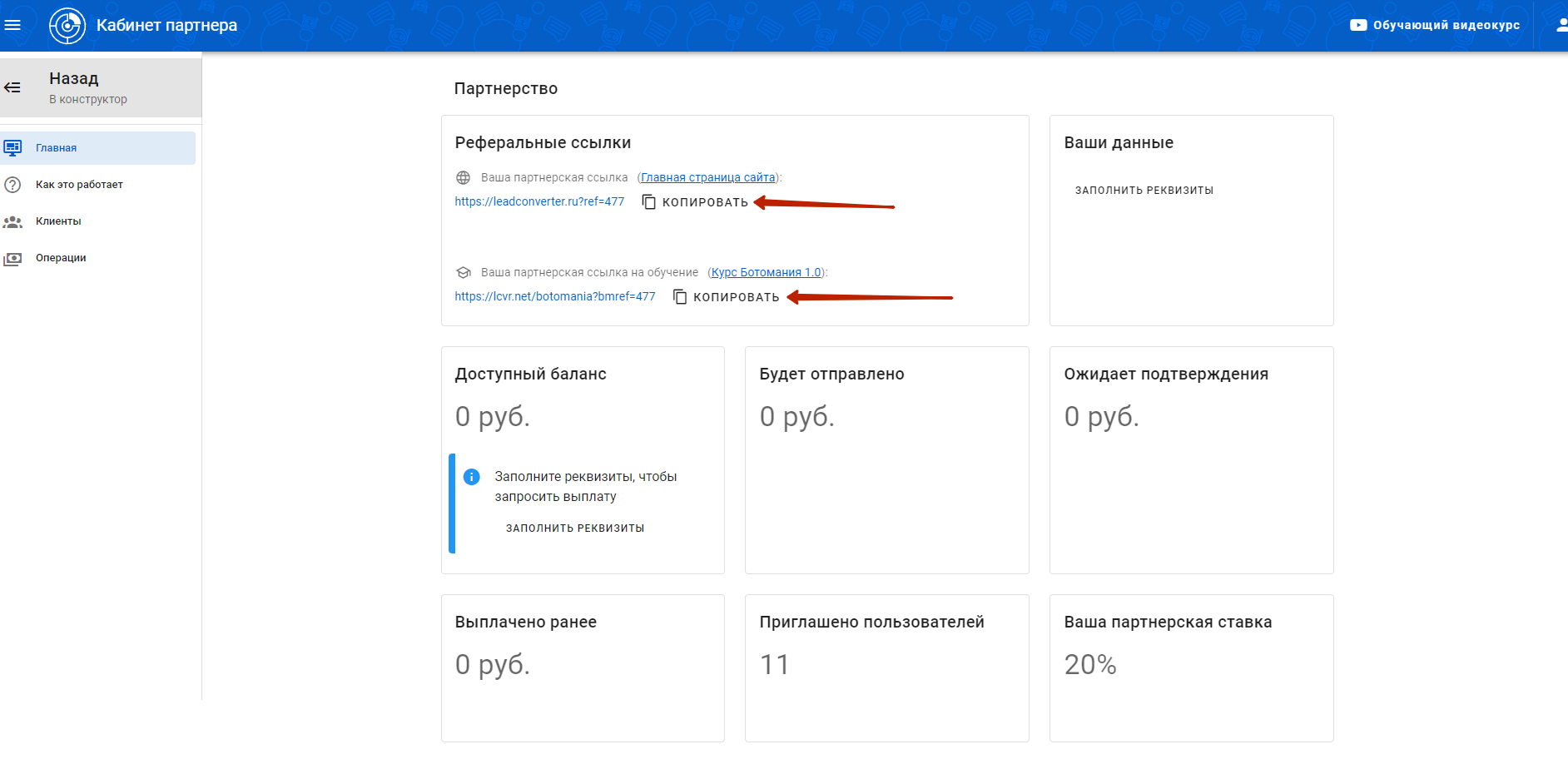 Если пользователь также зарегистрируется в [LeadConverter](https://leadconverter.ru/?utm_source=referral_doc) - он станет вашим рефералом.